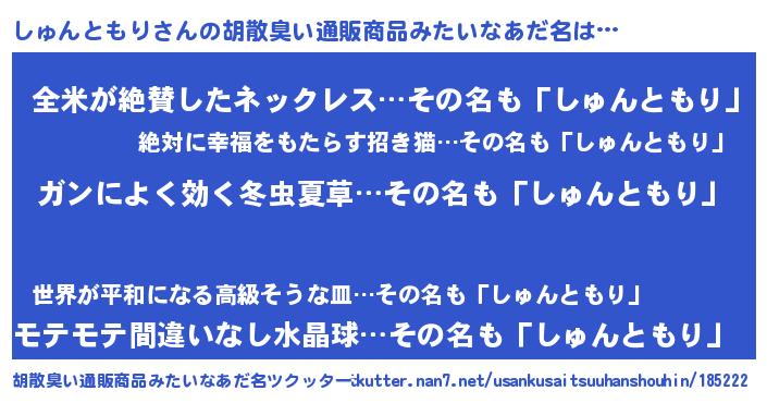 | 恥ずかしいあだ名 | 『シュントモリデラックス』『しゅちん』 |