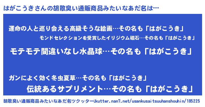 | ピコ太郎風あだ名 | 『ハコ二郎』『ピハ三郎』『ハガ五郎』 |