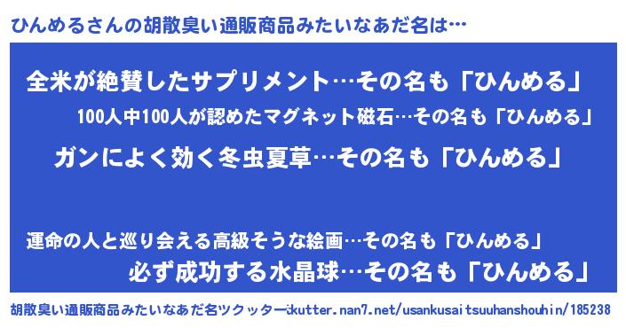 | 意味不明あだ名 | 『自称ひんめる』『ペロリンひんめる』 |