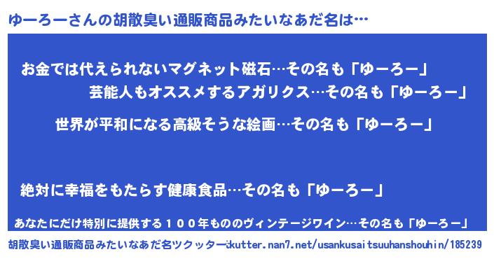 | 意味不明あだ名 | 『ゆーろーフォーエバー』『自称ゆーろー』 |