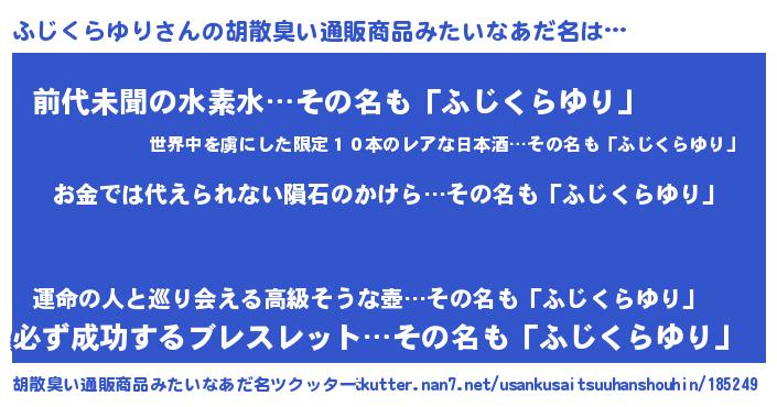 | ヘコむあだ名 | 『ふじくらゆり(震え声)』『ふじっふぃ~』 |