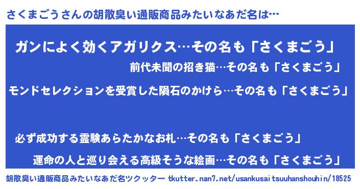 | 男性向けラノベタイトル風あだ名 | 『うちのさくまごうが世界を掌握している!』 |