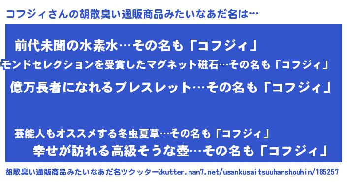 コフジィさんの胡散臭い通販商品みたいなあだ名をツクッター!