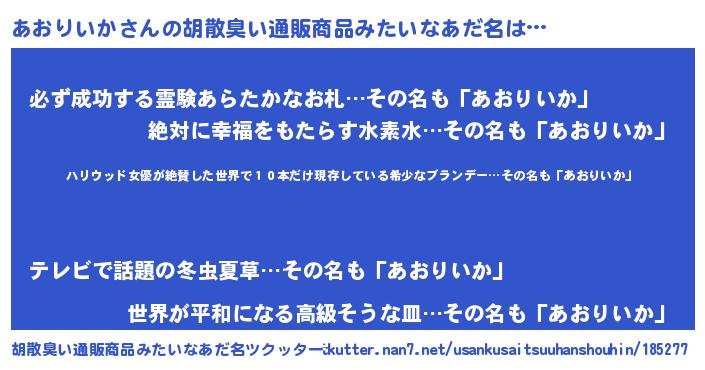 | 伝説のあだ名 | 『伝説のスナイパーあおりいか』 |