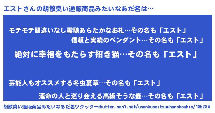 | ヘコむあだ名 | 『エスト(笑)』『エスにゅー』 |