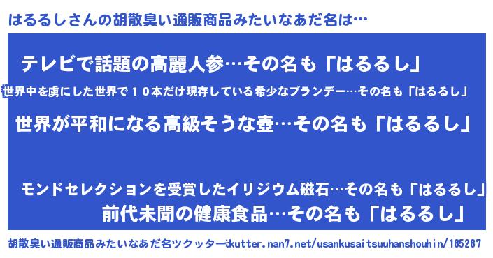 | 意味不明あだ名 | 『はるるしフォーエバー』『自称はるるし』 |