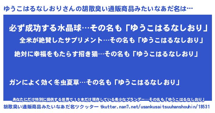 | ヘコむあだ名 | 『ゆうこはるなしおり(笑)』『ゆうにゅー』 |