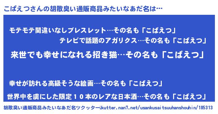 | 意味不明あだ名 | 『永久保存こばえつ』『ペロリンこばえつ』 |