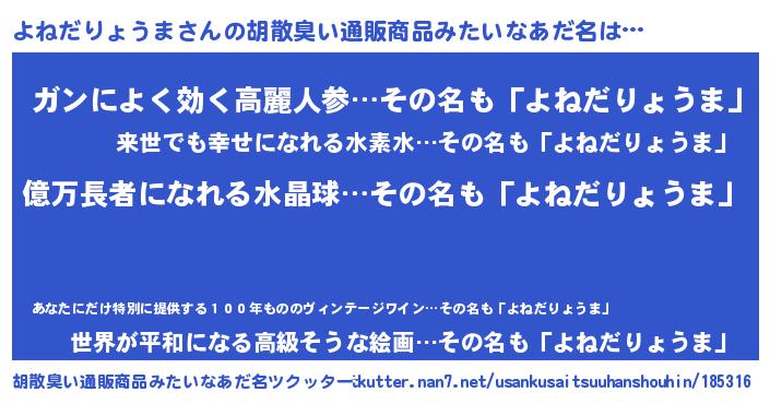 | 欧米人風あだ名 | 『マイケルよねだりょうま』 |