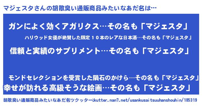 | 欧米人風あだ名 | 『ウサインマジェスタ』 |