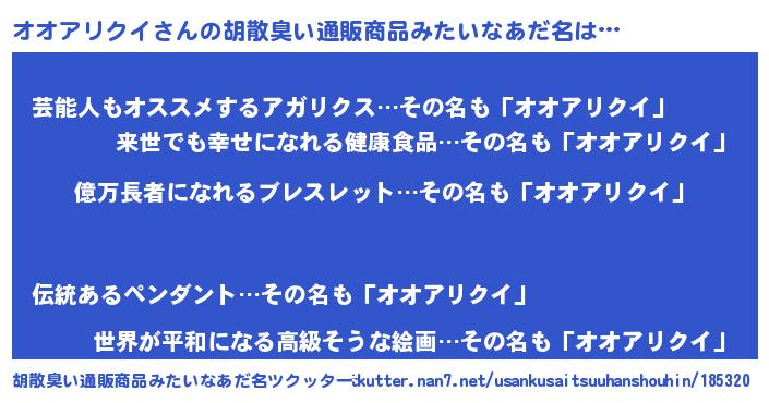 | 男性向けラノベタイトル風あだ名 | 『オオアリクイアートオンライン』 |