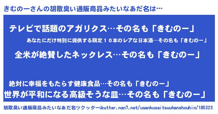 | 男性向けラノベタイトル風あだ名 | 『きむのーの嫁は女の子じゃないと思った?』 |