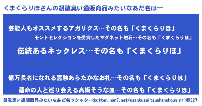 | ヘコむあだ名 | 『くまっ子』『レバニラ』『くまにー』 |