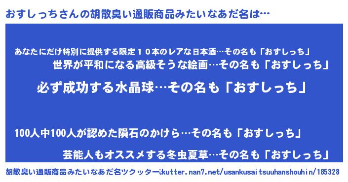 | 男性向けラノベタイトル風あだ名 | 『おすしっちの憂鬱』 |