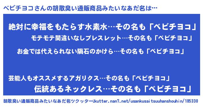| 欧米人風あだ名 | 『ダニエルベビチヨコ』 |