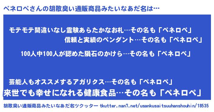| ヘコむあだ名 | 『ペネっふぃ~』『ペネロペ(遠い目)』 |
