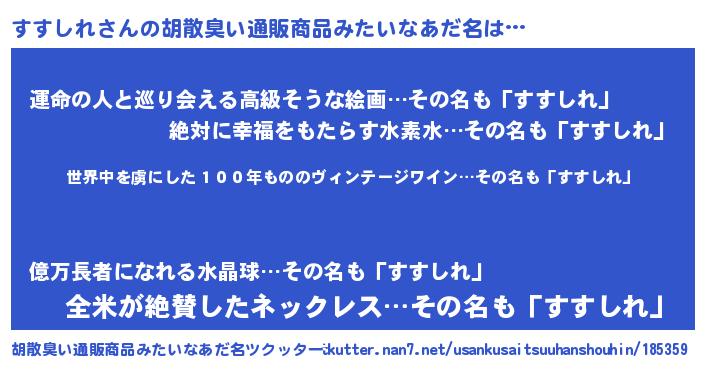 | 意味不明あだ名 | 『住所不定無職すすしれ(11歳)』 |