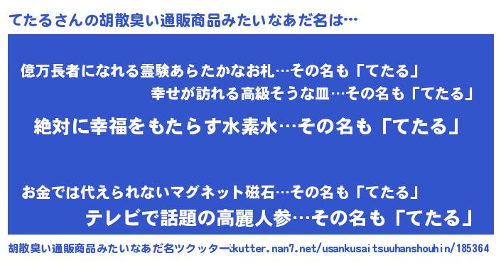 | 恥ずかしいあだ名 | 『てたちん』『プリティーてたる』 |