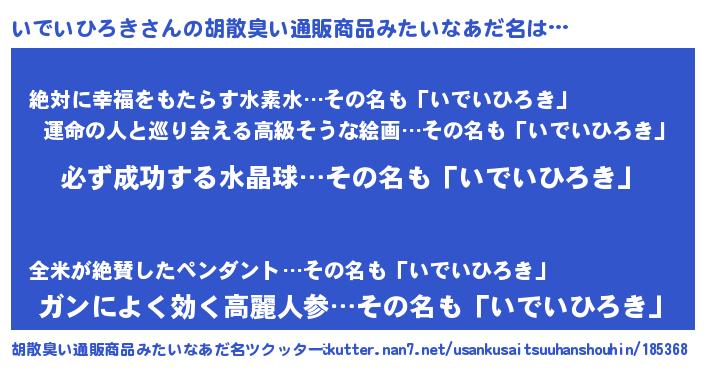 | ヘコむあだ名 | 『いでにゅー』『いでいひろき(苦笑)』 |