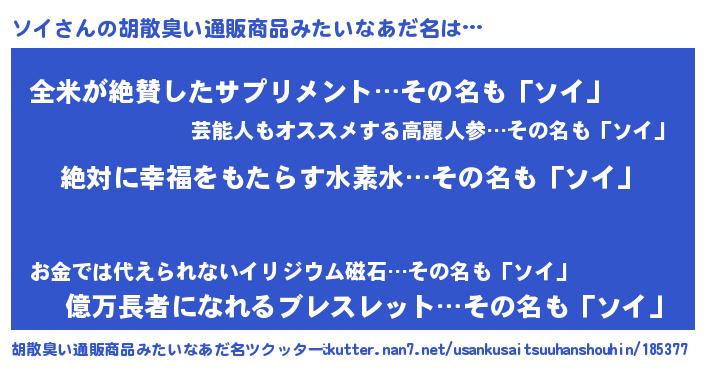 | ヘコむあだ名 | 『ソイ(苦笑)』『ソイを』『ソイにー』 |