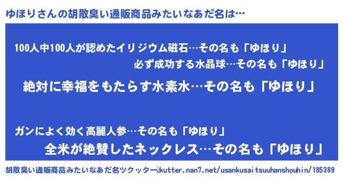 | ヘコむあだ名 | 『ゆほり(苦笑)』『ゆほっ子』『牛乳』 |