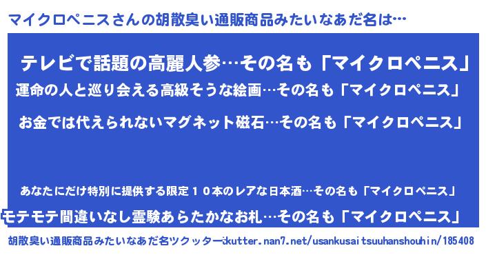 | ヒーロー風カッコイイあだ名 | 『愛の使者マイクロペニス』 |