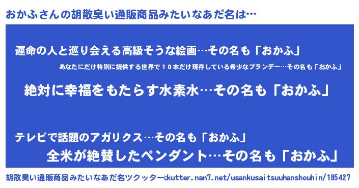| 意味不明あだ名 | 『永久保存おかふ』『おかふフォーエバー』 |