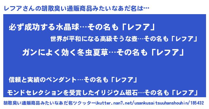 | 女子向けラノベタイトル風あだ名 | 『レフアなんてお断りですっ。』 |