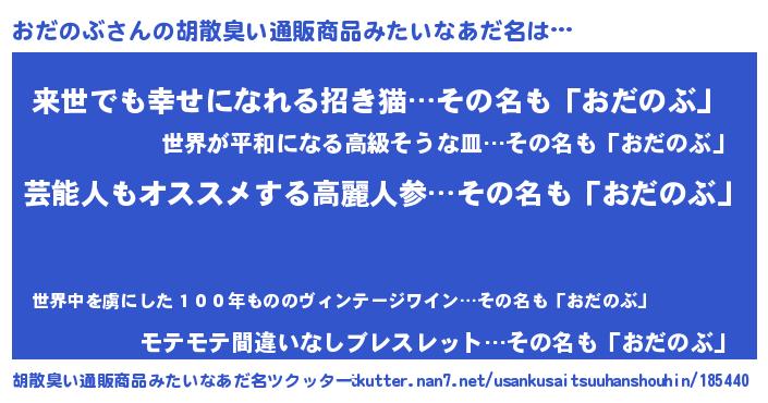 | 恥ずかしいあだ名 | 『オダノブデラックス』『おだちん』 |