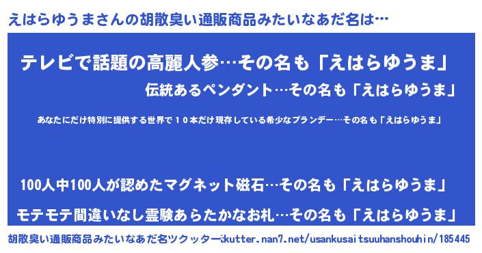 | 意味不明あだ名 | 『住所不定無職えはらゆうま(84歳)』 |