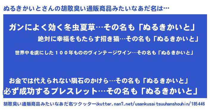 | ヒーロー風カッコイイあだ名 | 『仮面ヌルダー』『スーパーヌルキカイト』 |