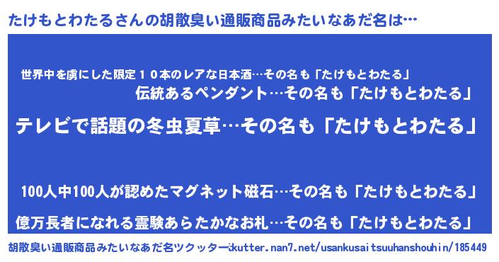 | 恥ずかしいあだ名 | 『タケモトワタルデラックス』 |