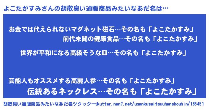 | 肩書あだ名 | 『よこたかすみ国家主席』 |