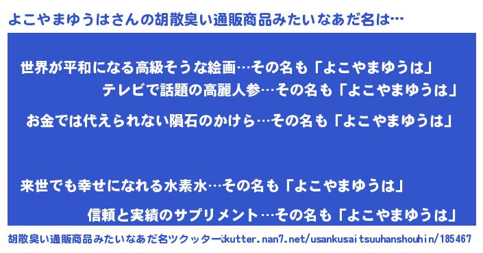 | 意味不明あだ名 | 『眠気覚ましガムよこやまゆうは味』 |