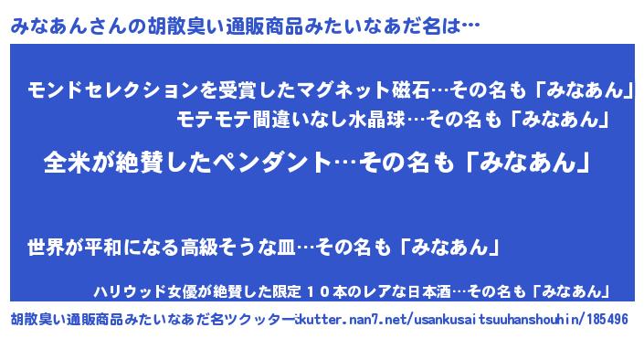 | 意味不明あだ名 | 『とにかく怪しいみなあん』 |