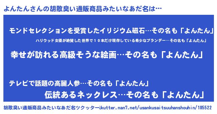 | 男性向けラノベタイトル風あだ名 | 『やはりよんたんの青春ラブコメはまちがっている 』 |