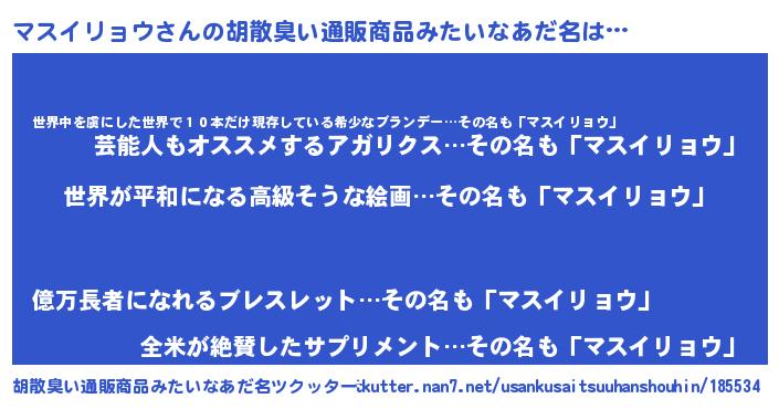 | 欧米人風あだ名 | 『マスイリョウクリステル』 |
