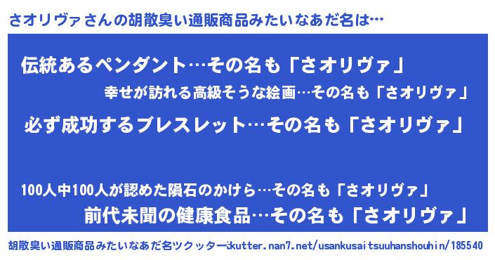 | 男性向けラノベタイトル風あだ名 | 『緋弾のサオリヴァ』『さオリヴァの憂鬱』 |