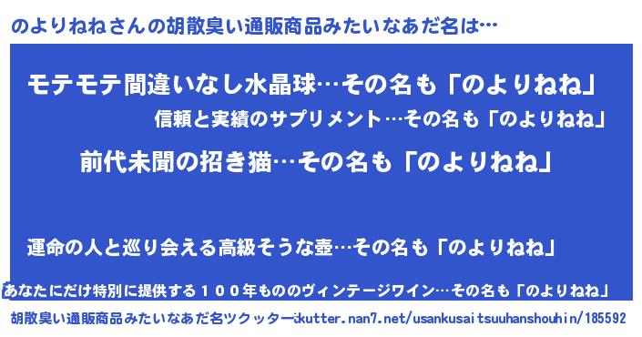 | 恥ずかしいあだ名 | 『のよちん』『プリティーのよりねね』 |