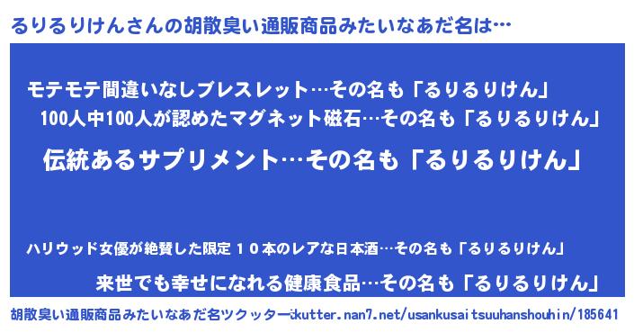 | 意味不明あだ名 | 『とにかく怪しいるりるりけん』 |