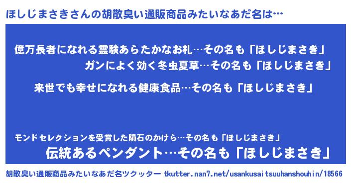 | 恥ずかしいあだ名 | 『ほしちん』『プリティーほしじまさき』 |