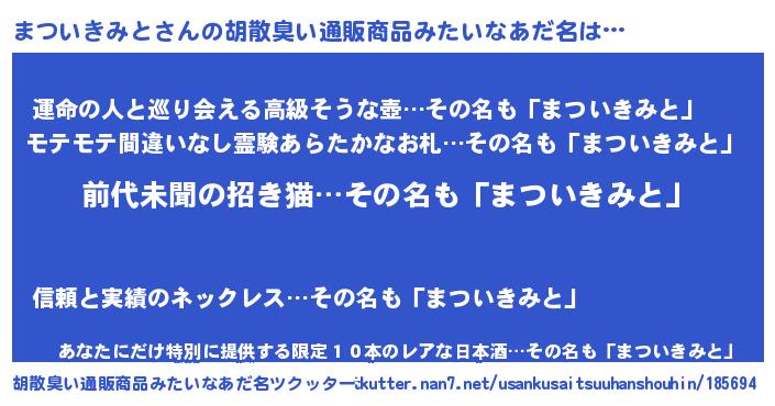 | ヘコむあだ名 | 『まついきみと(笑)』『酢こんぶ』 |