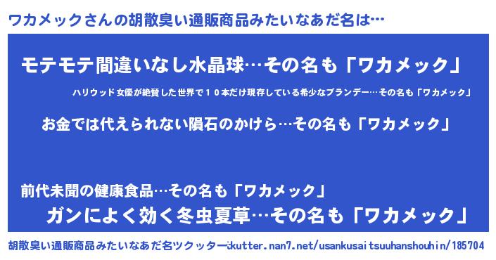 ワカメックさんの胡散臭い通販商品みたいなあだ名をツクッター!