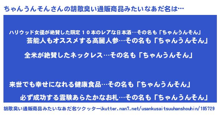 | ヘコむあだ名 | 『ちゃっぺ』『ちゃにゅー』 |