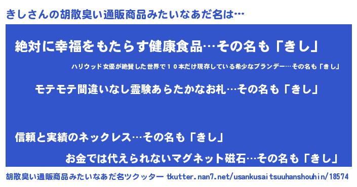 | 意味不明あだ名 | 『ペロリンきし』『永久保存きし』 |