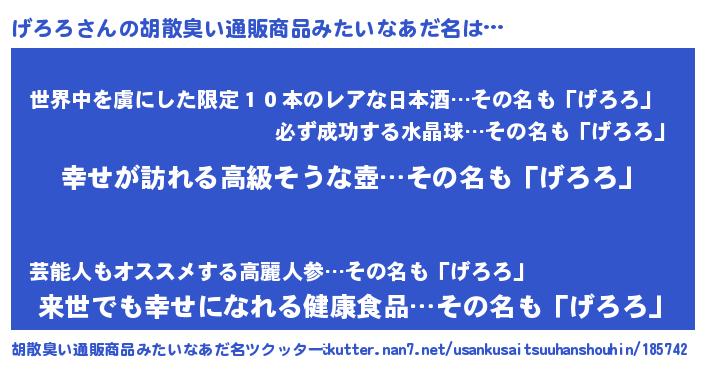 | 意味不明あだ名 | 『エリンギ科げろろ属』『永久保存げろろ』 |