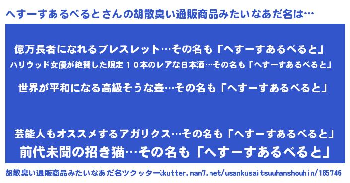 | 意味不明あだ名 | 『へすーすあるべるとフォーエバー』 |