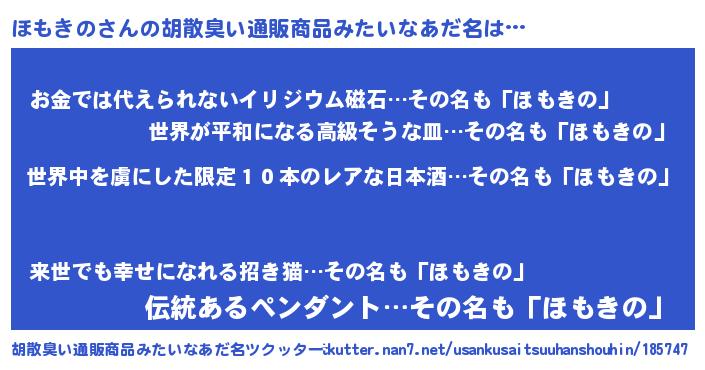 | 意味不明あだ名 | 『住所不定無職ほもきの(56歳)』 |