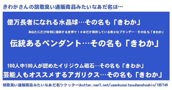 きわかさんの胡散臭い通販商品みたいなあだ名をツクッター!