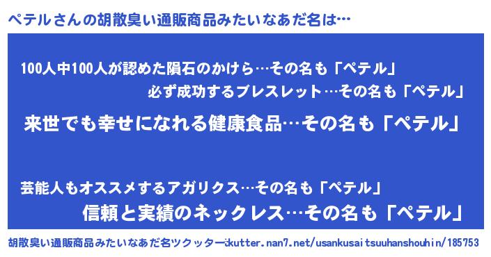 | ヘコむあだ名 | 『ペテル(爆)』『ペテっぺ』『豆乳』 |